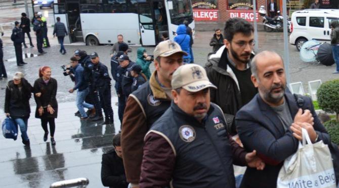Aralarında DBP İl Eş Başkanı Recep Kuru ve HDP Osmangazi, Nilüfer ve Yıldırım ilçe yöneticilerinin de aralarında bulunduğu 9 kişi ise emniyetteki sorgulamalarının ardından bu sabah adliyeye sevk edildi. Adliyeye giriş sırasında slogan atan şüphelileri polis engellerken yakınları alkışla destek verdi.
