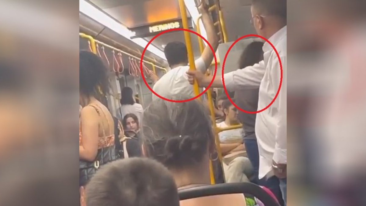 Bursa merkez Osmangazi ilçesinde 30 Temmuz'da, metroya binen kadın, eşini başka bir kadınla görünce sinirlendi. Metroda bağırıp kocasına ve yanındaki kadına tepki gösteren kadın, "Ver o anahtarı. Öldür lan beni, bunun için mi öldüreceksin? Anahtarı ver, evin anahtarını ver. Kurban olduğum Allah'ım gördün mü? Fehmi ile buluştunuz değil mi?" dedi.
