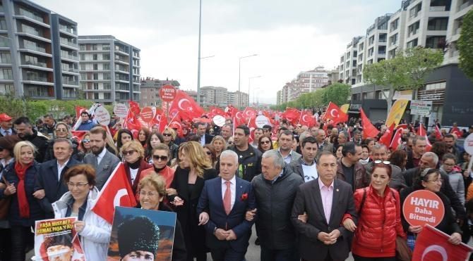 Yürüyüş sonunda konuşma yapan Nilüfer Belediye Başkanı CHP’li Mustafa Bozbey, 23 Nisan’ın, Türkiye Büyük Millet Meclisi’nin kurulduğu, bağımsızlığın, egemenliğin ilan edildiği gün, olduğuna dikkat çeken çekerek, 'Bugün, Mustafa Kemal’in, ‘Milletin saltanat ve hakimiyet makamı yalnız ve ancak Türkiye Büyük Millet Meclisi’dir’ dediği gün' dedi.