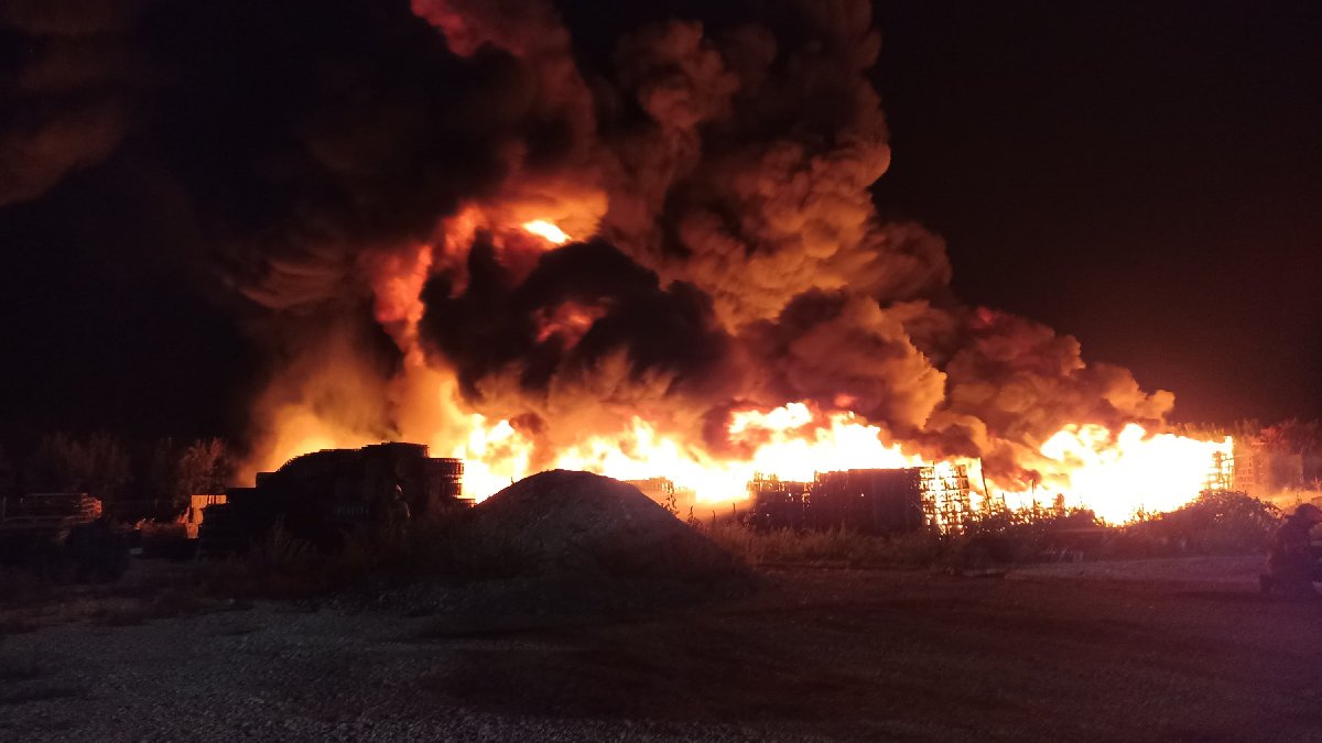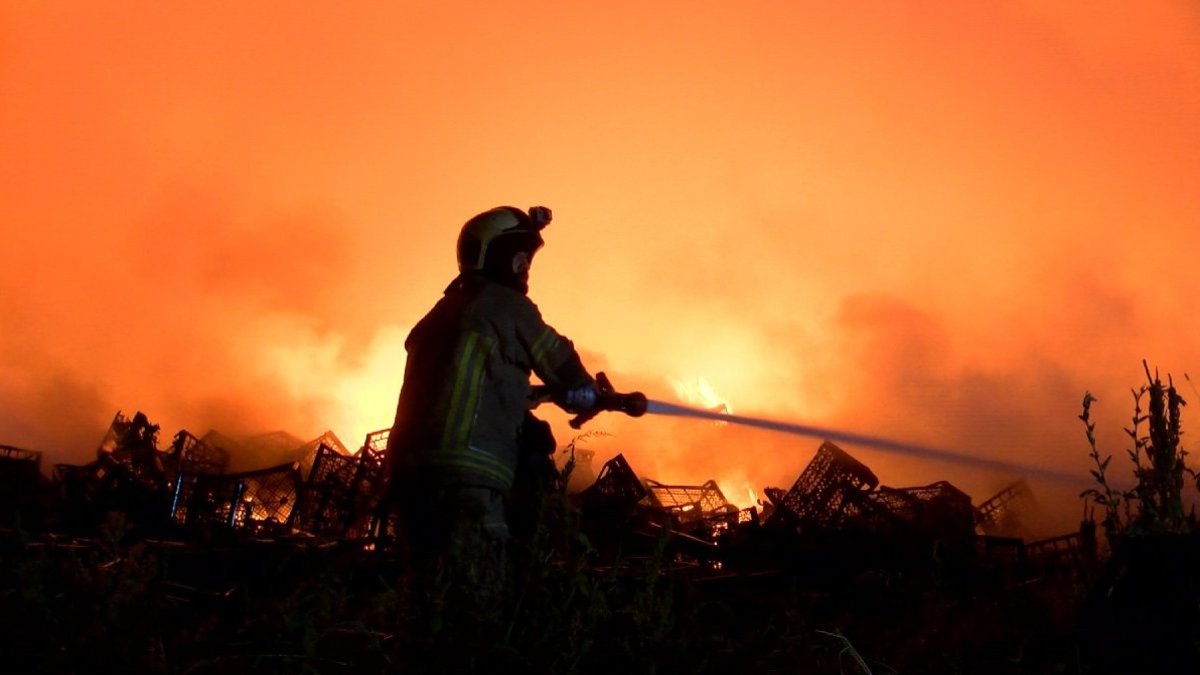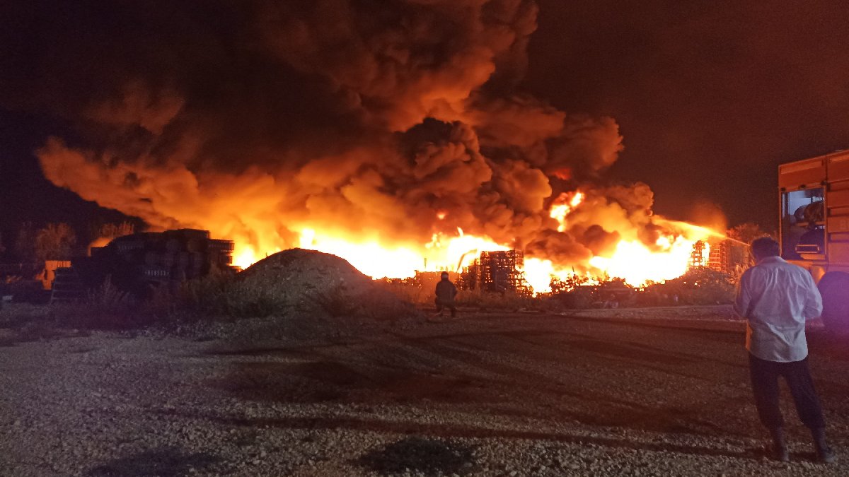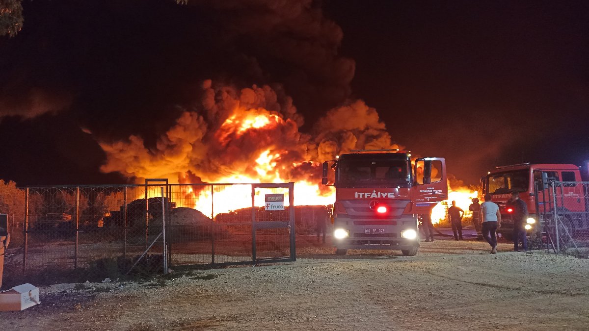 Bursa'nın Osmangazi ilçesi, Çukurca Mahallesi'nde soğuk hava deposunun açık havadaki bölümündeki plastiklerin bulunduğu alanda yangın çıktı.