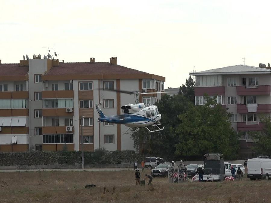 Alçak uçuş nedeniyle vatandaşların panik yaşayarak polis ekiplerine ihbarda bulunduğu helikopterin, elektrik dağıtım şirketi adına çalıştığı, direkler arasında uzanan elektrik tellerine uyarı balonu taktığı öğrenildi. Helikoptere takılan bir sepet yardımıyla tellere ulaşan ekiplerin o anları kaydedildi. İHA