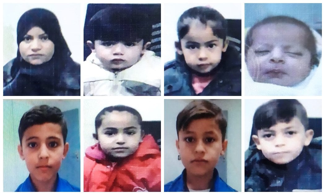 Savcıların ve ilgili ekiplerin evde yaptığı incelemelerin ardından anne Amina Eltaha Elmuse (31), çocukları Yasir (1), Ahmed (4), Gerem (6), Merem (9), Ali (10 ) ve Muhammed Aljasem (3) ile evde misafir olarak bulunan yeğenleri Ahmed (10) ve Ali El Cesim'in (11) naaşı cenaze araçlarına taşındı.