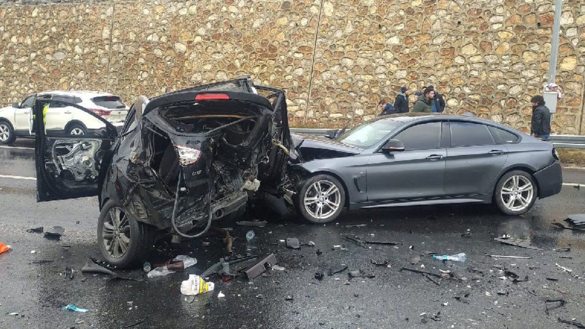 Görüntülerde Özlem Savun'un (37) kullandığı otomobilin, bariyerlere çarptıktan sonra yolda savrularak, daha önce kaza yaparak sağ şeritte duran Yakup Terzi (57) yönetimindeki otomobil ile ona yardım için duran Bünyamin Sivri (34) idaresindeki otomobil ve Şehmuz Karabulut idaresindeki otomobilin yanında bekleyenlerin arasına daldığı görüldü.