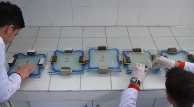 Bursa Işıklar Askeri Hava Lisesi'nde bir grup öğrenci tarafından "Milli Kalkan Sodyum Pentaborat" adlı proje çerçevesinde, radyasyondan kotumaya yönelik kumaş geliştirildi.