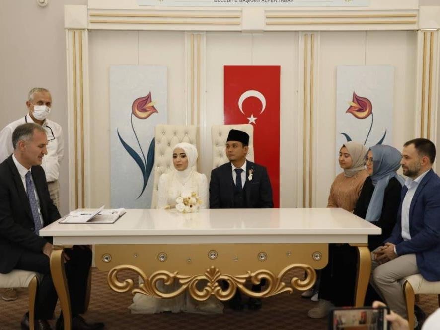 Nişanın ardından yaklaşık 10 ay sonra genç çift İnegöl’de nikah masasına oturdu. Genç çiftin nikahını Belediye Başkanı Alper Taban kıydı. Nişan törenine katılamayan damadın ailesi nikah törenine de katılamadı. Nikaha katılamayan damadın babası Muhammad Asshidiqiy ve annesi Erma Dahlan nikah törenini video konferans yoluyla izledi. Nikah sırasında damadın ailesinin gözyaşlarını tutamadığı görüldü. (İHA)