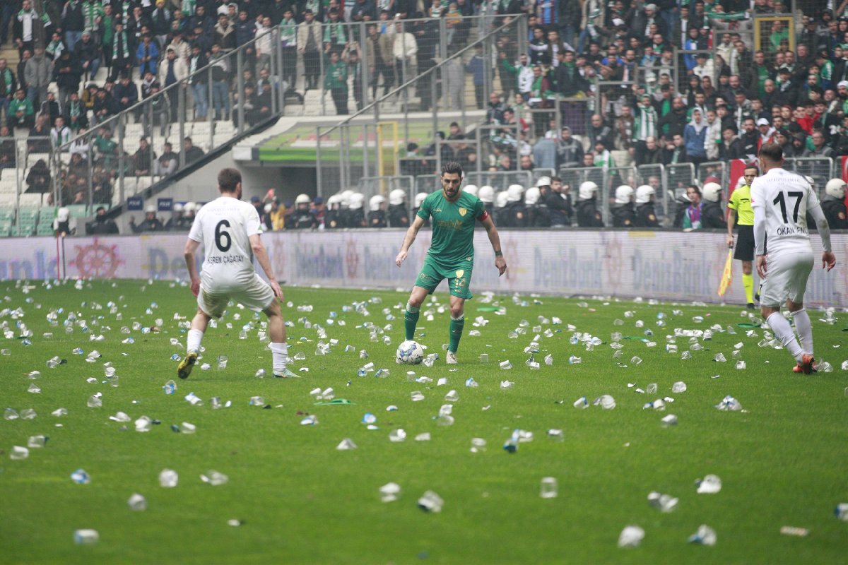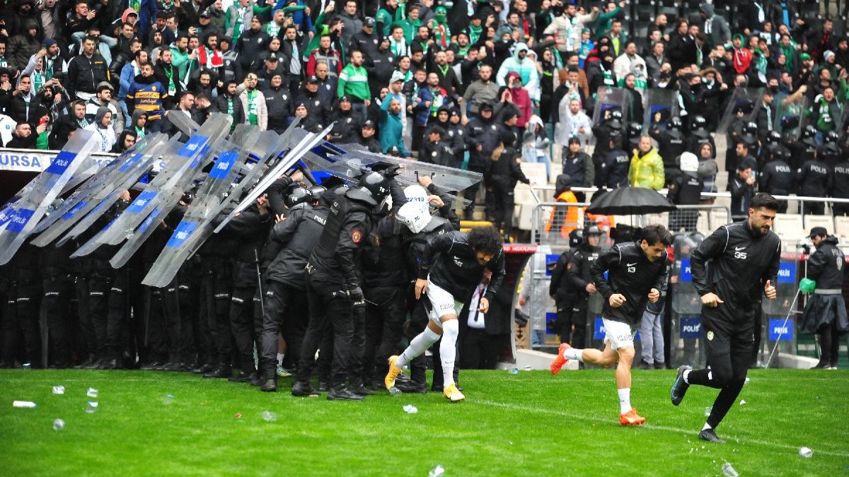 Amedsporlu futbolcular, zemini incelemek için sahaya çıktığında, tribünlerdeki Bursaspor taraftarlarının protestosuyla karşılandı. Amedsporlu bazı futbolcuların da taraftarlara karşılık vermesiyle tansiyon yükseldi. Bunun üzerine Bursasporlu futbolcular da sahaya çıktı. İki takım futbolcuları arasında yaşanan arbedeye çevik kuvvet polisleri müdahale etti. Polisin müdahalesiyle saha içerisindeki arbede sonlandırılırken, her iki takımın oyuncuları soyunma odasına geri döndü. Amedsporlu futbolcuların soyunma odasına girişi sırasında tribünlerden pet şişe atıldı.