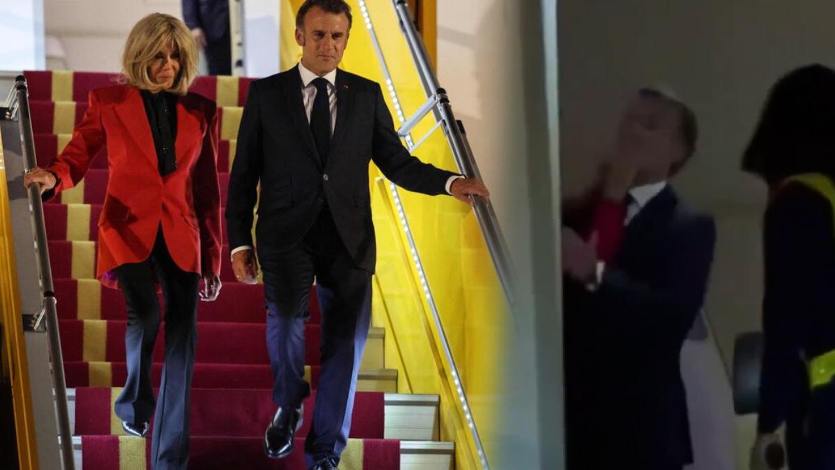Görüntülerde Macron bir an sendeledikten sonra toparlanıyor ve kameraya el sallıyor. O sırada Brigitte Macron, uçağın gövdesinin arkasında kaldığı için yüz ifadesi ve beden dili kameraya yansımıyor.