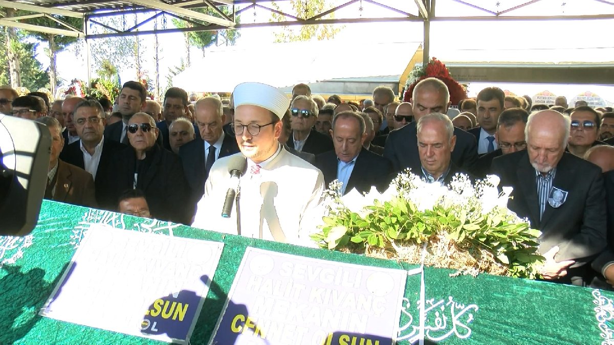 Kıvanç'ın cenazesi daha sonra Zincirlikuyu Camii'ne götürüldü. Burada düzenlenen cenaze törenine Kültür ve Turizm Bakanı Mehmet Nuri Ersoy, Memleket Partisi Genel Başkanı Muharrem İnce, Gençlik ve Spor Bakanı Mehmet Muharrem Kasapoğlu, Eski Genelkurmay Başkanı Emekli Orgeneral İlker Başbuğ'un yanı sıra Müjdat Gezen, Uğur Dündar, Haldun Dormen, Erol Evgin, Demet Akbağ, Selim Soydan, Orhan Gencebay, Fatih Altaylı, Ali Kırca gibi çok sayıda ünlü isim katıldı. "ONUNLA ÇOK ŞEY PAYLAŞTIK"  Törene katılanlardan gazeteci Ali Kırca, "Hepimizin hayatına dokundu. O alfabenin 29 harfine ve 29 kuşağa dokunabilen biriydi. 97 yaşına kadar uzun değil doğru yaşadı. Onunla çok şey paylaştık" dedi. "TÜRK HALKININ KALBİNDE ULU ÇINARDI" Erol Evgin de "Halit ağabeyimiz sanat, spor ve Türk halkının kalbinde bir ulu çınardı. 'Seni ilk ben sundum' derdi bana. Çok başka bir yeri vardı. 2005 yılında Halit Kıvanç Gecesi yapalım istedik. Ben telefon ettim, o zaman Bodrum'daydı. 'Halit Ağabey, senin için bir gece yapmak istiyoruz' deyince 'Ben gelir katılırım' dedi. 'Halit Ağabey, biz senin için gece' yapacağız deyince, sustu. 'Şimdi gözyaşlarımı tutuyorum, telefonu kapattıktan sonra ağlayacağım' demişti" ifadesini kullandı. "DÜN GECE ABLAMI KAYBETTİM" Müjdat Gezen "Buradan ablamın cenazesine yetişeceğim dün gece onu da kaybettik. Ben Halit ağabeyin eline doğdum. Benim adım 'Halit'tir. Onu görüp diğer cenazeye gideceğim" diye konuştu. "ÇOK BÜYÜK HİZMETLER VERDİ" Sanatçı Orhan Gencebay ise "Her yere yetişebilen bir insanımızı kaybettik. Allah gani gani rahmet eylesin. Kendisi çok büyük hizmetler verdi. Bir zamanlar çok görüşürdük çok fazla anımız var" dedi. Haldun Dormen de "10 senedir göremiyordum ama ilk Dormen Tiyatrosu'nu yazan kişi o oldu. Ona çok minnettarım. Nur içinde yatsın" diye konuştu. "ÇOK BÜYÜK BİR DEĞERDİ" Eski Genel Kurmay Başkanı İlker Başbuğ da "O benim için çok değerli birisiydi. Son yıllarda Bodrum'da aynı yerde yaşıyorduk. Sık sık beraber oluyorduk. Çok büyük bir değerdi. Biliyorsunuz 1925 doğumlu. O aslında cumhuriyetimizin ilk nesli" diye konuştu. Kıvanç'ın naaşı öğle namazına müteakip kılınan cenaze namazının ardından Zincirlikuyu Mezarlığı'na defnedildi. (AA-DHA)