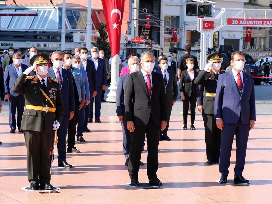 (FOTO: SÖZCÜ)Cumhurbaşkanı ve AKP Genel Başkanı Recep Tayyip Erdoğan'ın 30 Ağustos Zafer Bayramı mesajının okunmasının ardından Valisi Ali Yerlikaya, Orgeneral Avsever ve Büyükşehir Belediye Başkan İmamoğlu, Atatürk Cumhuriyet Anıtı'na çelenk bıraktı. Tören bir dakikalık saygı duruşu ve İstiklal Marşı'nın okunmasının ardından sona erdi.