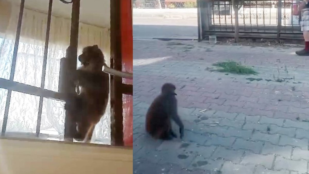 Maymunu görenler korkup kaçarken, dört katlı binanın ikinci katına kadar tırmanan maymunun, balkondan evin içine girerek evi dağıttığı anlar ev sahibi tarafından cep telefonu kamerası ile kaydedildi.