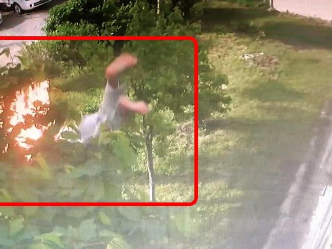 Kadının düşme anına ait görüntüler de ortaya çıktı. Güvenlik kameralarına yansıyan görüntülerde kadının adete alev topu gibi yere düştüğü ve yere düştükten sonra da yanmaya devam ettiği görülüyor.