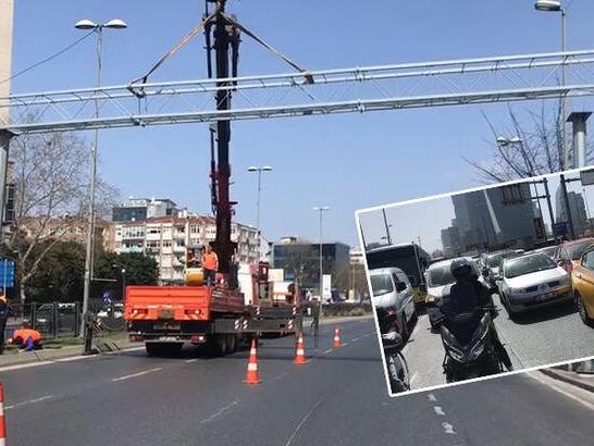 Sallanan direğin altından geçen araçların üstüne devrilme tehlikesi nedeniyle Maslak yönü trafiğe kapatıldı, trafiğin kapatılmasıyla oluşan araç kuyruğu Balmumcu'ya kadar uzadı.