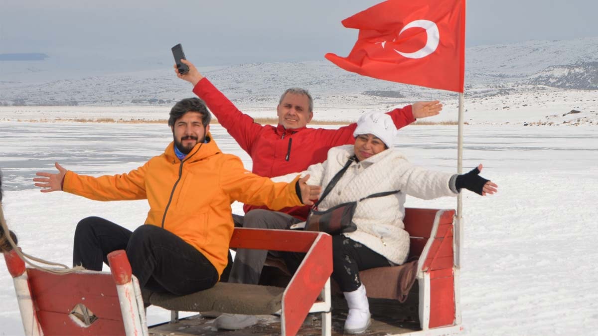 Kışın yüzeyi buz tuttuğu için köylülerin üzerinden ulaşım sağladığı Çıldır Gölü, her yıl binlerce ziyaretçiyi ağırlıyor.