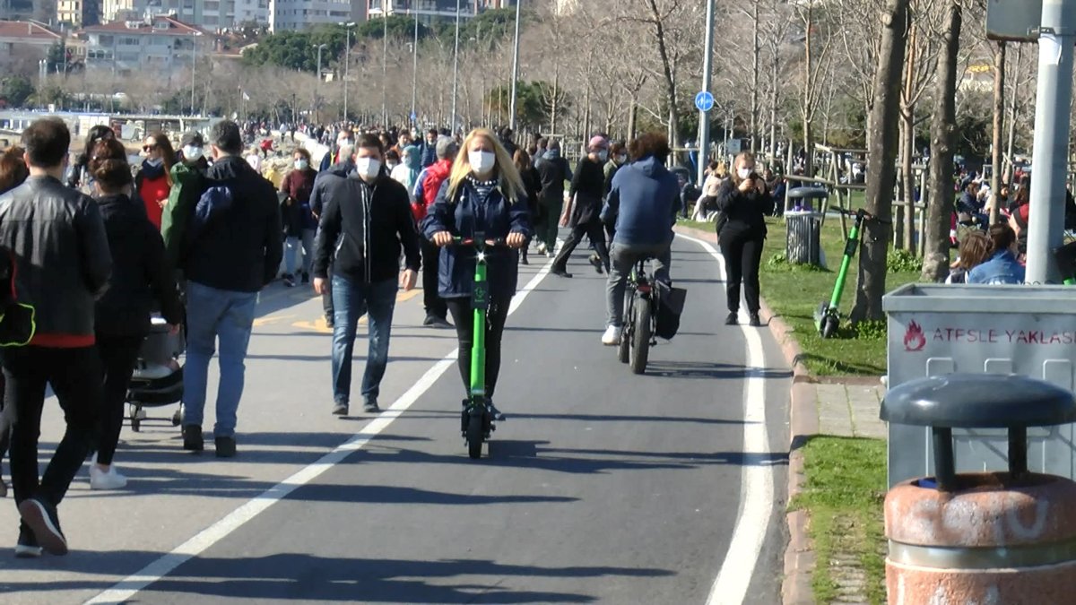 Kadıköy Caddebostan Sahili de yoğunluktan nasibini aldı. Kimi çimenlik alanda oturup, piknik yaptı kimisi ise sahil yolunda bisiklete bindi.