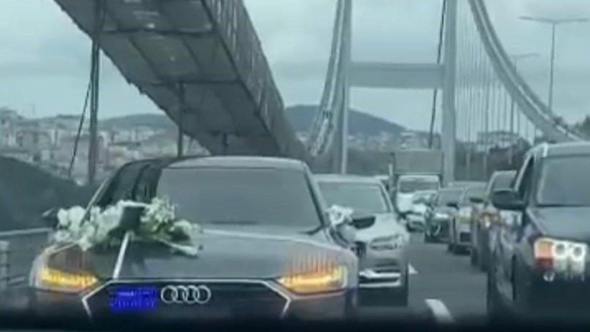 Yine görüntülerde yer alan ve trafiği aksatan araçlara, aynı kanunun "Trafiği engelleyecek şekilde yavaş sürmek" maddesi ile "Saygısızca araç kullanmak" maddeleri gereğince ayrı ayrı 436'şar liradan olmak üzere düğün konvoyuna yönelik 12 bin 924 lira cezai işlem uygulandı. (AA)