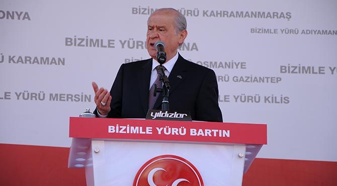 KAMİL ELİBOL/BARTINBaşbakan Davutoğlu'nın ‘’Şeref dersinden çaktığını’’ belirten Bahçeli ‘’’Sabah Serok, öğlen Mele, akşamüstü Ahmet Hani, gece yarısı Ahmet Sani olan Davutoğlu, sen ve zihniyetin Akif’in karşı kutubusun’’ dedi. Bahçeli şu mesajları verdi:
