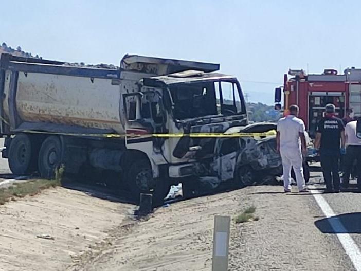 Adana'nın Kozan ilçesinde sabah saatlerinde iş yerinin önünden çalınan otomobil, kamyonla çarpıştıktan sonra alev aldı. Yangında, otomobilin sürücüsü yaşamını yitirdi.