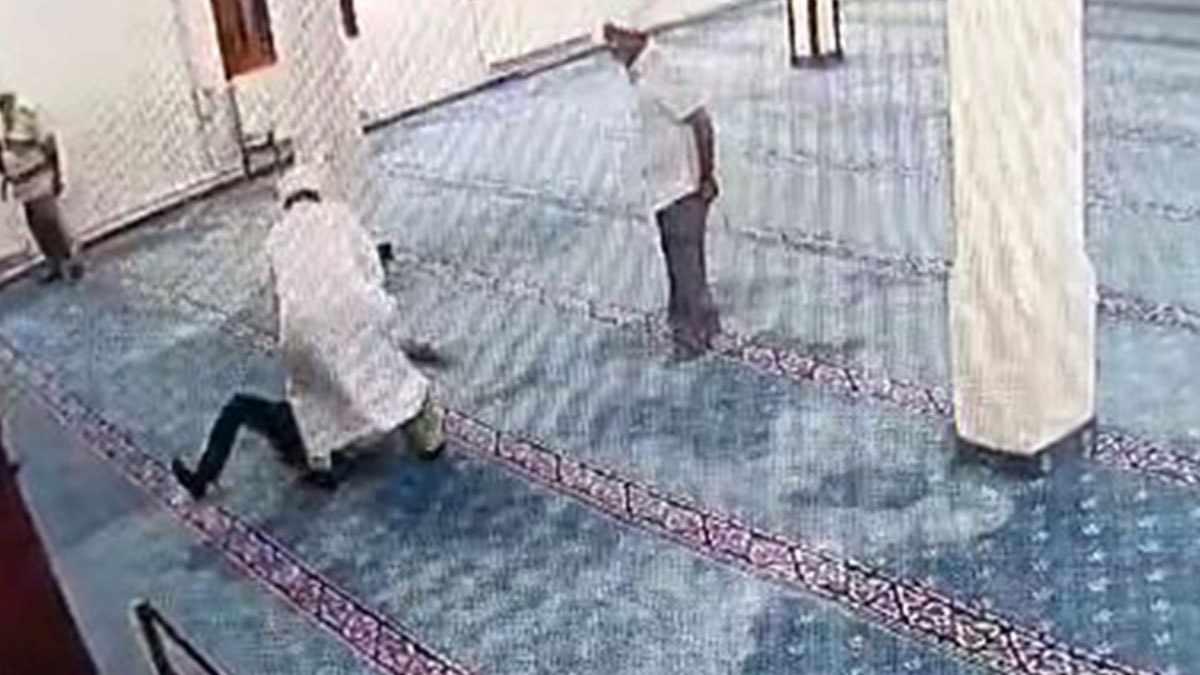 Cemaatin yardımıyla O.K.'nin elindeki bıçak alınırken, imamın müdahalesi kameraya yansıdı.