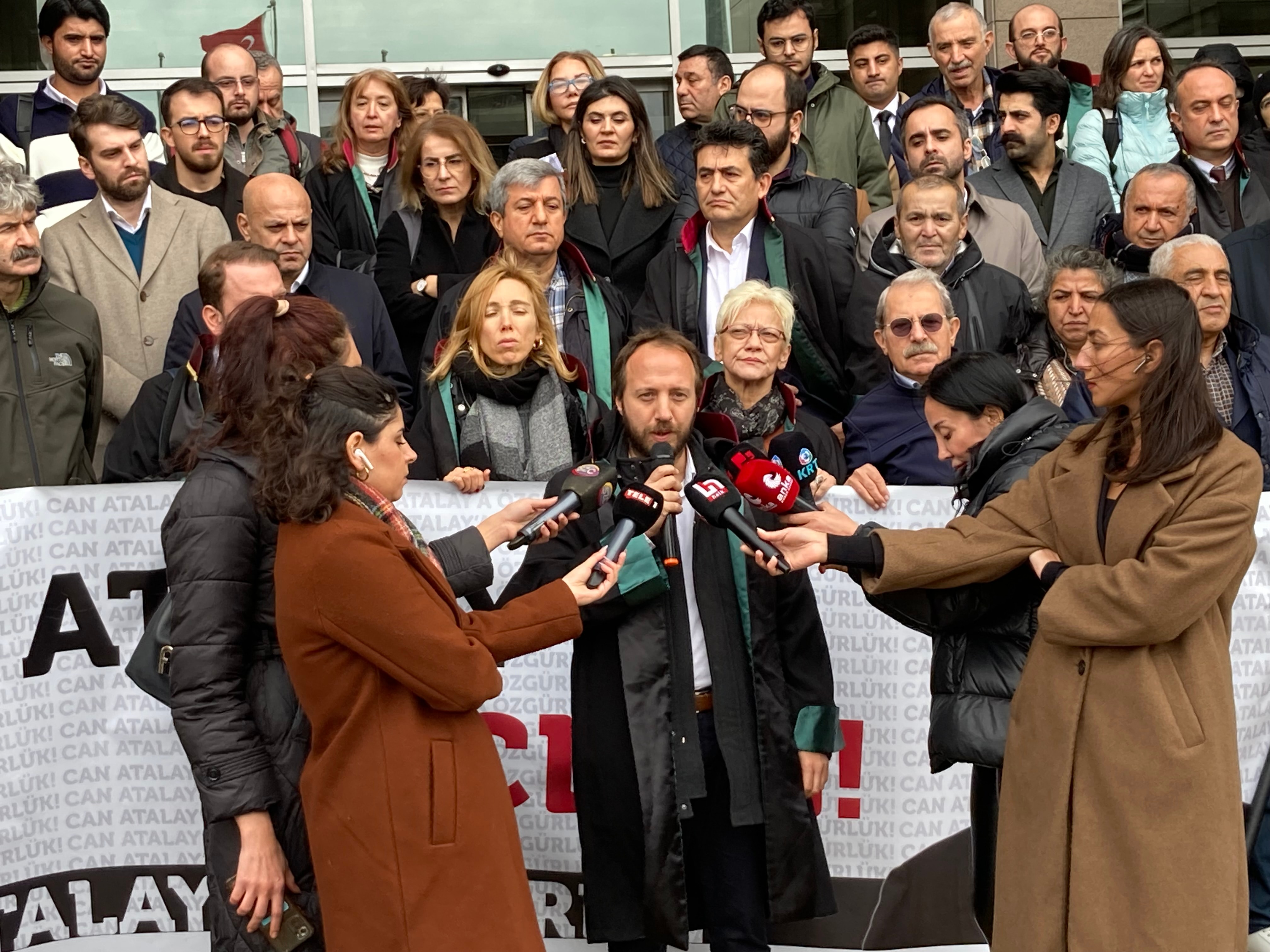 Heyetin dosyaya ilişkin bir karar vermesi beklenirken Can Atalay’ın arkadaşları ve meslektaşları tarafından Çağlayan Adliyesi önünde basın açıklaması yaptı.