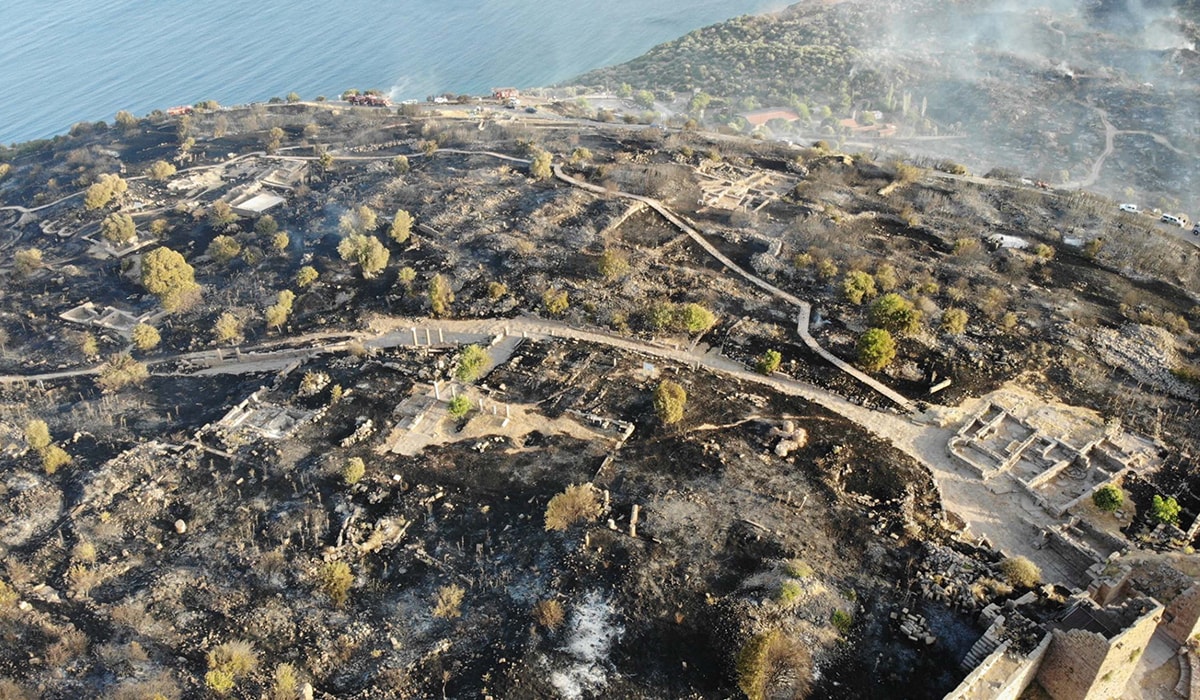 Yangından etkilenen Assos Ören Yeri ve Athena Tapınağı’nda inceleme ve hasar tespit çalışmaları yapılması için ören yeri 3 gün ziyarete kapatıldı.