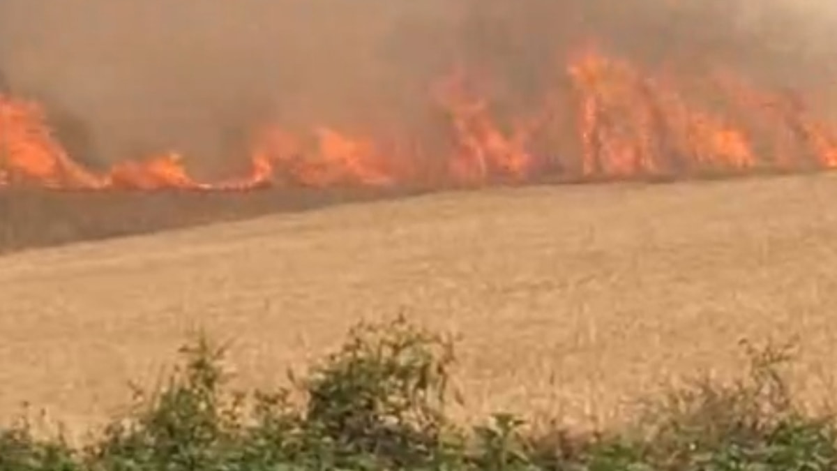 Çanakkale'nin Biga ilçesinde tarım arazisinde yangın çıktı. Alevlere, havadan ve karadan müdahale ediliyor.