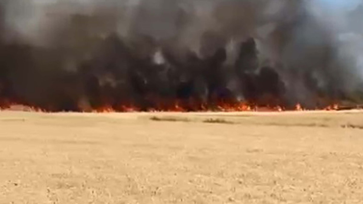 Çanakkale'nin Biga ilçesinde tarım arazisinde yangın çıktı. Ekipler, yangına havadan ve karadan müdahale ediyor.