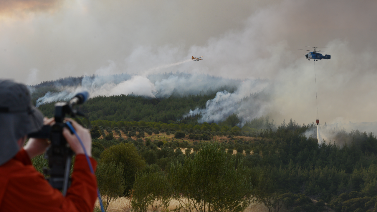 Helikopter ve uçaklar, günün ilk ışıklarıyla havadan müdahaleye tekrar başladı.