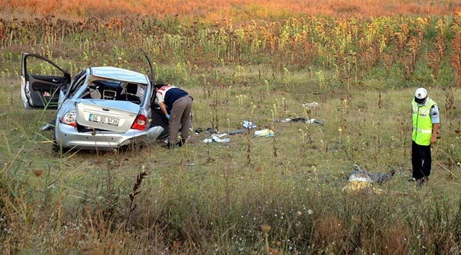 Keşan’dan Gelibolu iskametine seyir halinde olan ve plakası öğrenilemeyen bir TIR’ı, 22 RL 702 plakalı otomobil solmamak isterken, arkasından hızla gelen 06 DD 9736 plakalı otomobil de önündeki bu aracı sollamaya çalıştı. Bu sırada önünde seyreden 22 RL 702 plakalı otomobile sürtünerek karşı şeride geçen 06 DD 9736 plakalı otomobil, Gelibolu’dan Keşan istikametine gelen 34 BS 5153 plakalı otomobille kafa kafaya çarpıştı. Ardından otomobilin tavan kısmını biçip yolu da aşarak tarlaya uçtu. 34 BS 5153 plakalı otomobilde çarpışmanın etkisiyle yoldan çıkıp tarlaya girdi. Kazaya karışan 22 RL 702 plakalı otomobilde ise hafif maddi hasar meydana geldi.