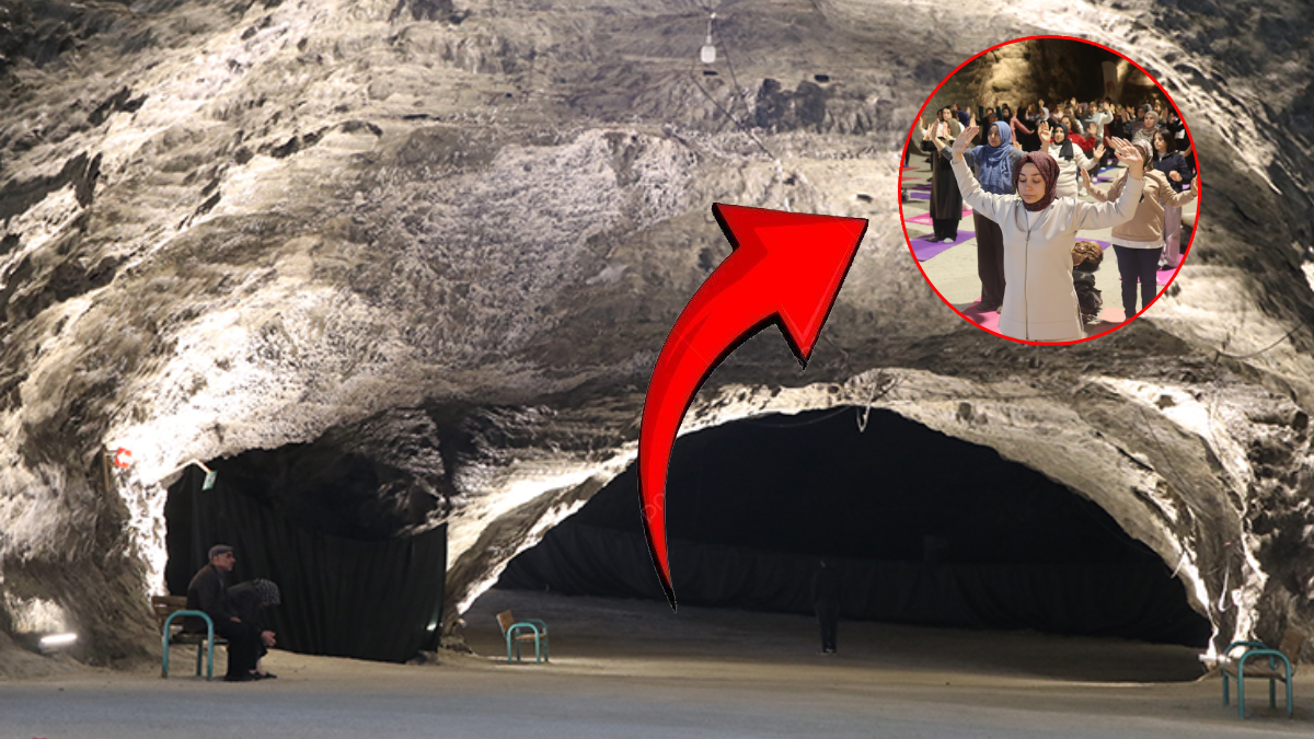 Tuzuyla meşhur olan Çankırı'da kadınlar için özel bir etkinlik düzenlendi. Çankırı Belediyesi'nin sosyal etkinlik olarak düzenlediği programda kadınlar yaklaşık yerin 150 metre aşağısında bulunan Yer Altı Tuz Şehri'nde egzersiz yapıyor.