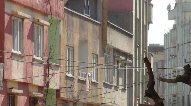 Öztürk ailesinin yaşadığı altında işyeri bulunan 3 katlı binanın ikinci katındaki evlerinin balkonunda özensiz konulan bayrak dikkati çekti.