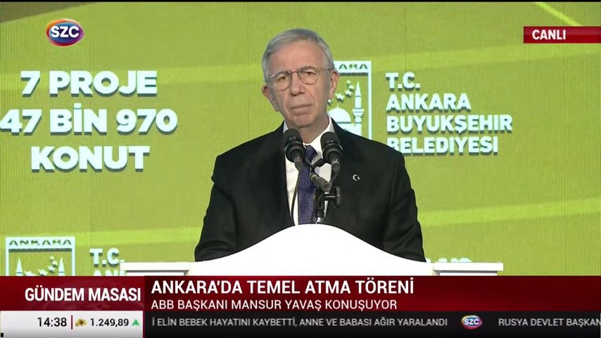 Törende ilk olarak Ankara Büyükşehir Belediye Başkanı Mansur Yavaş bir konuşma yaptı. Daha önce 4 bin konutluk temel attıklarını belirten Yavaş, "Ekonomik sıkıntılar nedeniyle, hükümetin tanıdığı imkanlarla işi alan müteahhitlerin hepsi işleri feshetti, iş başımıza kaldı" dedi.