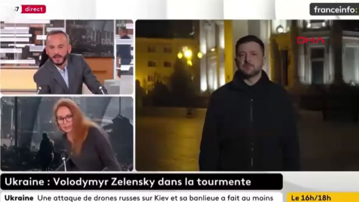 Stüdyodaki yoğun siren sesi bir anda yayına yansıyınca, program ekibi binayı tahliye etmek zorunda kaldı. Zelenski yayında kalmayı sürdürürken, kameralar stüdyonun boşaltılış anlarını saniye saniye gösterdi.