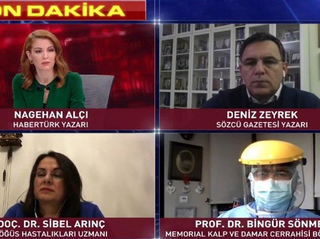 Prof. Dr. Bingür Sönmez, programda konuşurken, canlı yayına katılanlardan özür dileyerek, hastanede olduğunu ve yayına kıyafetle katılmak zorunda olduğunu belirtti.