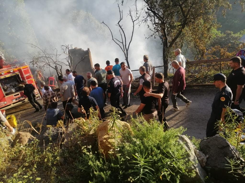 Köylülerin çabasına rağmen rüzgarın da etkisiyle büyüyen yangında, alevler bitişikteki diğer evlere de sıçradı. Ahşap evler ile ağır ve samanlıklar alev topuna dönüştü.