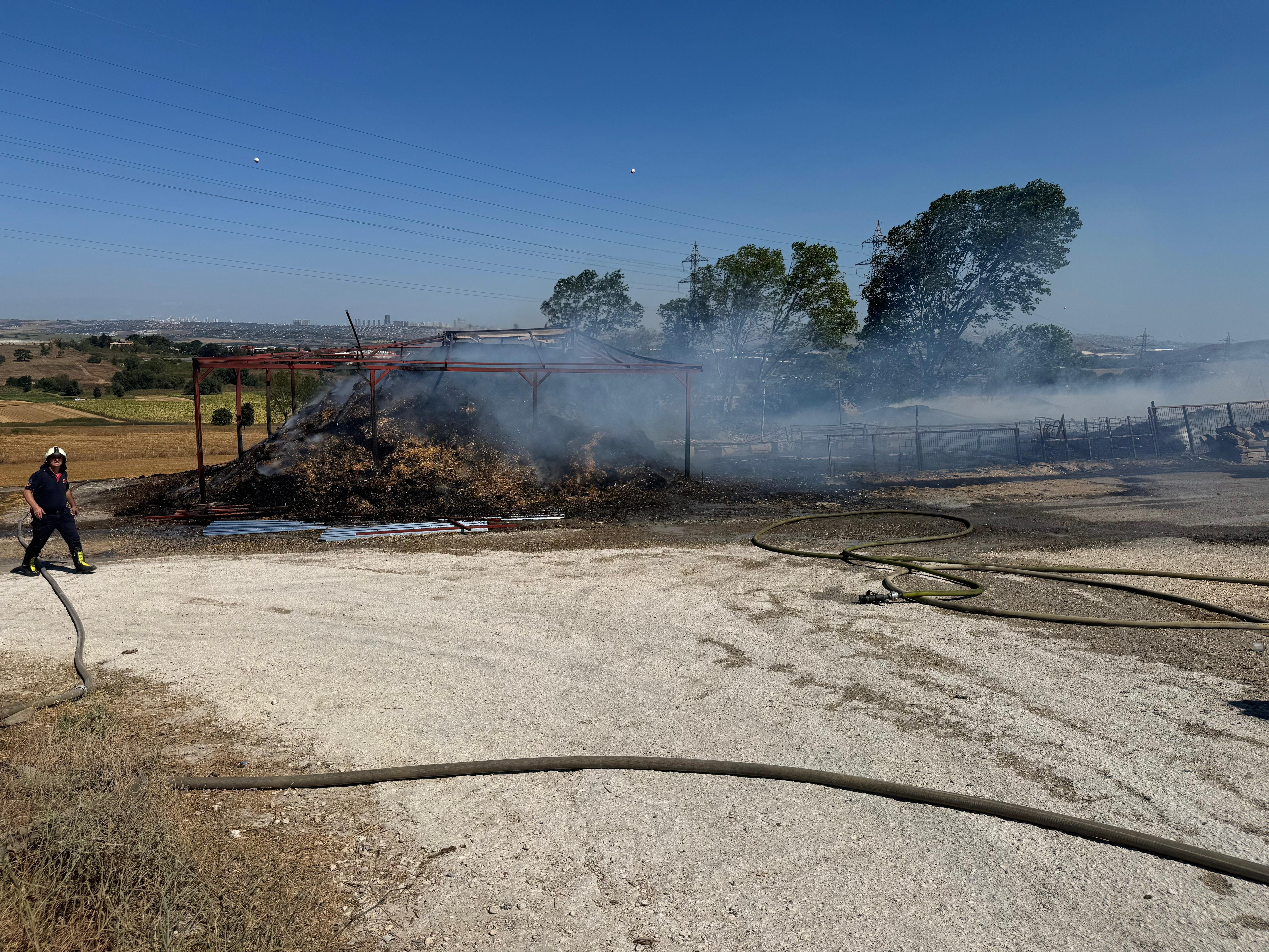 Merkez Mahallesi Sahil Bulvarı'nda bir ahırdaki samanlar henüz belirlenemeyen nedenle alev aldı. Kısa sürede büyüyen alevler, otluk alana sirayet etti.