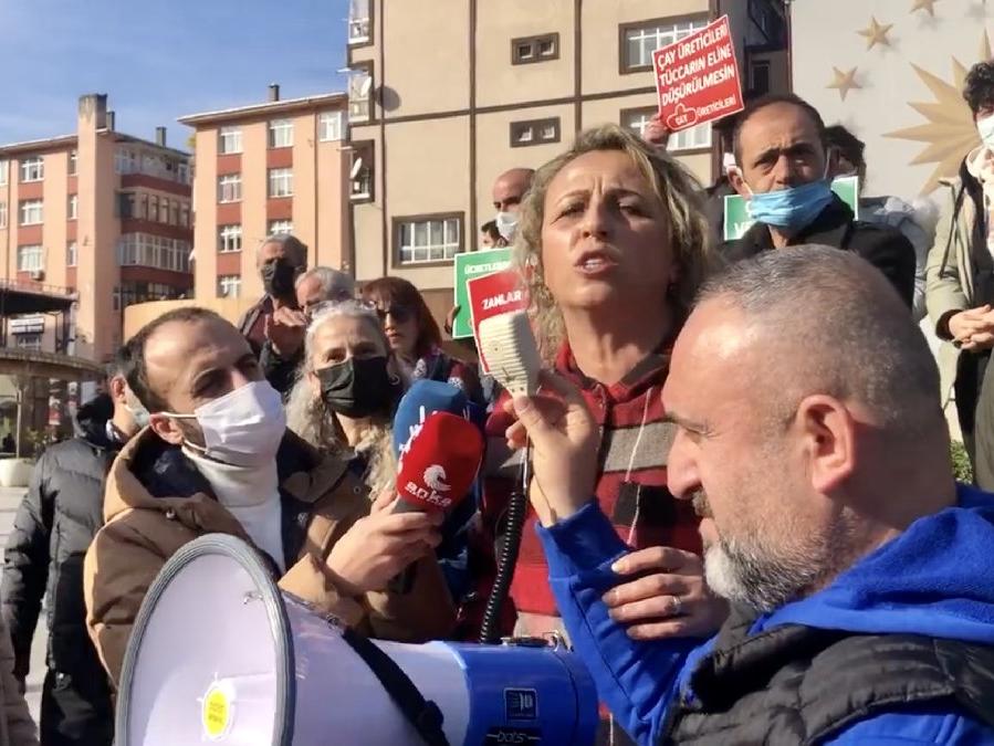 Mevsimlik işçiler ile üreticilerin düzenlediği eyleme DİSK Yönetim Kurulu Üyesi ve Gıda-İş Genel Başkanı Seyit Aslan da katıldı. Eylemde konuşan üretici Murat Yılmaz, ülkenin zor dönemden geçtiğini belirterek, "Zamla yatıyoruz, zamla kalkıyoruz. Çay üreticileri olarak çok zor durumdayız. Mazot ateş pahası, gübre fiyatları uçtu. Bu mazot ve gübre fiyatlarıyla 2022'de çay üreticileri olarak çok zor günler bizi bekliyor" diyerek, bu yıl gübre ve mazot alamayacaklarını söyledi.
