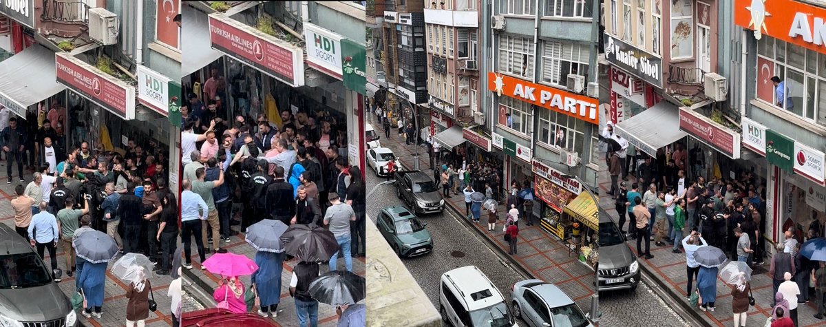 AKP il başkanlığı kapısına dayanan işçilerin içeri alınmamasının ardından tartışma yaşandı. İl Başkanlığı binasına kısa sürede polis ekipleri gelerek işçilerden Mesut Öksüz ve Fatih Yılmaz'ı gözaltına aldı. İfadeleri için Rize İl Emniyet Müdürlüğü'ne götürülen iki işçinin arkadaşları emniyet müdürlüğü önünde toplanarak arkadaşlarının serbest bırakılmasını istedi.