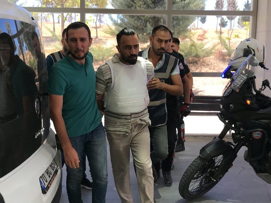 Karaman'a getirilen Ercan Küçükbingöl emniyetteki sorgusunun ardından geniş güvenlik önlemleri altında çelik yelek giydirilerek adliyeye sevk edildi. Nöbetçi sulh ceza hakimliğine çıkarılan Ercan Küçükbingöl, tutuklanarak cezaevine gönderildi. (DHA)