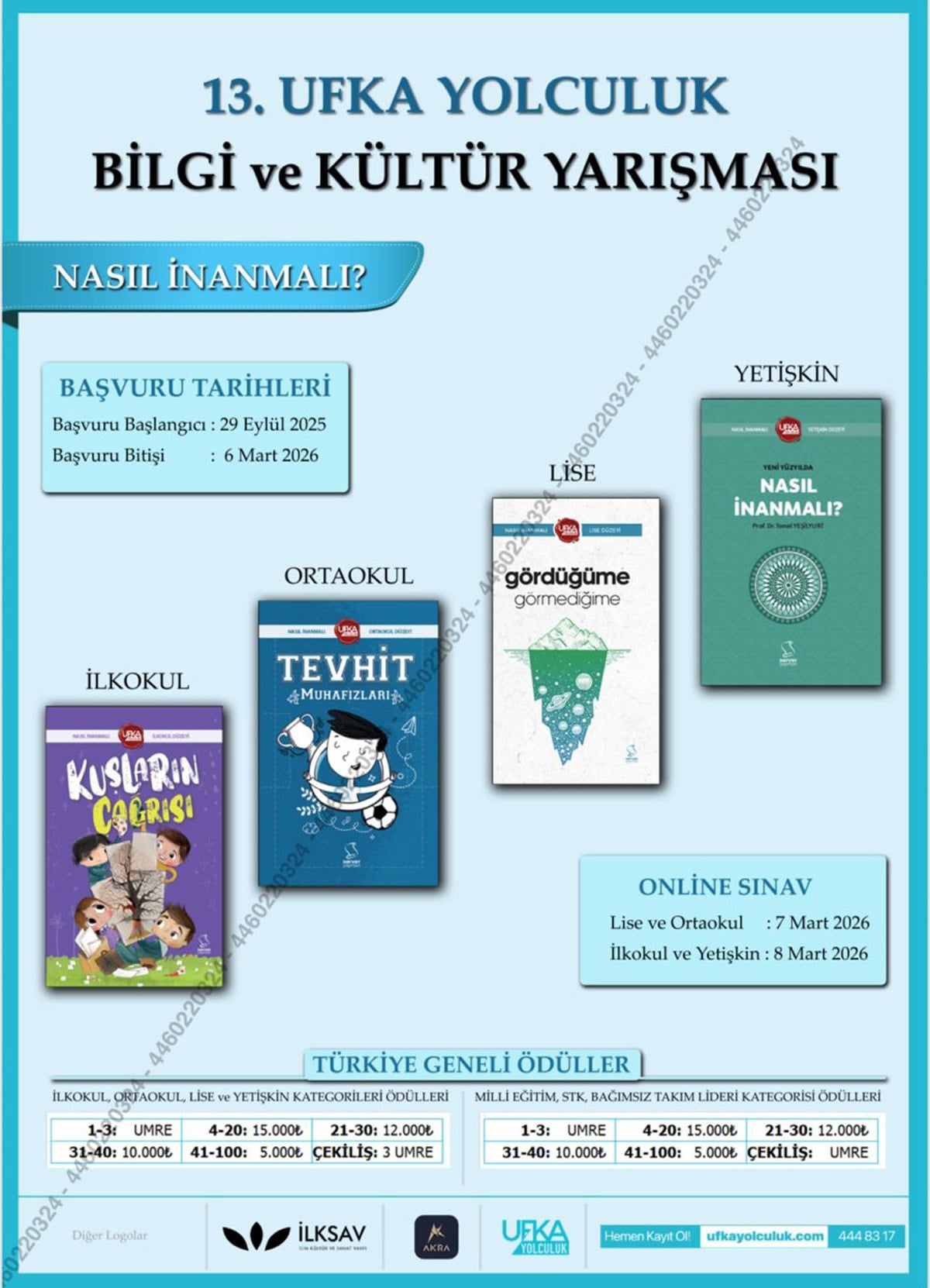 Nakşibendi tarikatına yakınlığıyla bilinen İLKSAV İlim Kültür ve Sanat Vakfı tarafından Türkiye genelinde “Ufka Yolculuk Bilgi ve Kültür Yarışması” düzenleniyor. Yarışma ilkokul, ortaokul, lise, yetişkin ve ilahiyat kategorilerinde yapılacak. Yarışmayı kazananlara Umre ödülü ile 5-15 bin TL arasında para ödülü verilecek.