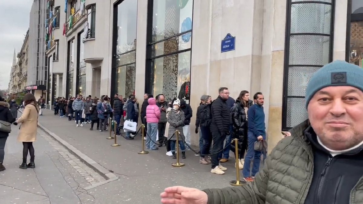 Enginyurt, dünyaca ünlü giyim markası Louis Vuitton mağazası önündeki kuyruğa dikkat çekti.