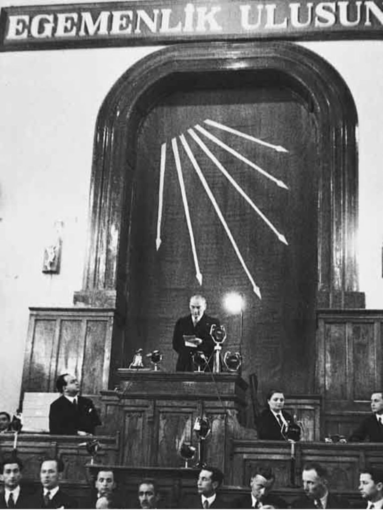 İzmir Büyükşehir Belediye Başkanı Cemil Tugay, kurultay mesajında Türkiye Cumhuriyeti'nin kurucu lideri Gazi Mustafa Kemal Atatürk'ün sözlerine ve fotoğrafına yer verdi.