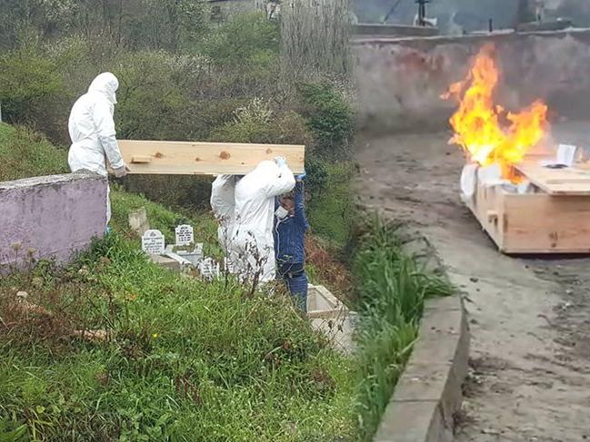 Savaş'ın taşındığı tabut daha sonra görevliler tarafından yakıldı.