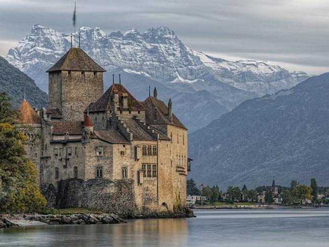 İsviçre'nin Montrö kentindeki Chillon Kalesi, kıyısında yer aldığı Cenevre Gölü ile kartpostallık görüntüler sunuyor.