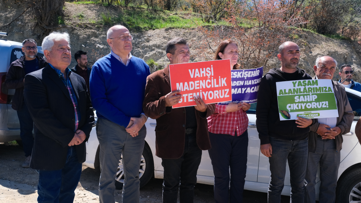 Yüz ölçümünün yüzde 71’ine maden arama ruhsatı verilen Eskişehir, dev şirketler tarafından esir alınıyor. Dün Mehmet Cengiz’in sahibi olduğu Cengiz Holding’e ait Eti Bakır AŞ’nin Eskişehir’de açmak istediği Alpagut Atalan Altın Madeni için bilirkişi keşfi yapıldı. Keşif esnasında köylüler nöbet tuttu. Jandarma ise keşif yapılırken köylüler ile arazi arasına barikat kurarak, vatandaşı karşısına aldı. Eylemde konuşan köylüler, “Bir köyümüz, bir de canımız kaldı onu da bu şirketler bizi zehirleyerek alacaklar” dedi. Bilirkişi incelemesinin ardından arazinin girişinden geçerken, çevreciler ve köylüler ellerindeki pankartlarla maden şirketlerine tepki gösterdi.