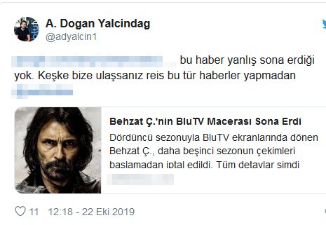 6 yıllık bir aranın ardından BluTV ekranlarında izleyicisiyle buluşan Behzat Ç.: Bir Ankara Polisiyesi dizisinin 9 bölümden oluşan ilk sezonu 19 Eylül'de final yapmıştı. BluTV'den yapılan açıklamayla 2'nci sezon hazırlıklarının da başladığı duyurulmuştu. Bugün, Behzat Ç. 2'nci sezonun yaşanan anlaşmazlıktan dolayı çekilmeyeceği iddiaları gündeme geldi. Bu haberlere yanıt, BluTV CEO'su Aydın Doğan Yalçındağ'dan geldi. Kişisel sosyal medya hesabından paylaşım yapan Yalçındağ, şu ifadeleri kullandı: