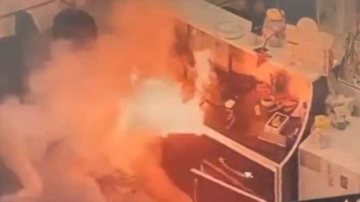Sultangazi'de tamire getirilen cep telefonunun bataryası, bomba gibi patladı. Paniğin yaşandığı o anlar güvenlik kamerasına yansıdı.