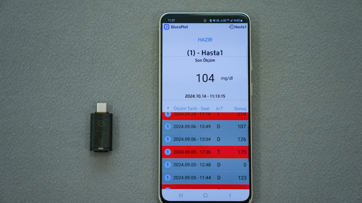 TÜBİTAK'ın da destek verdiği çalışmayla parmaktan alınan kandan şeker ölçümü yapabilen "glukometre probu" geliştiren bilim insanları, bu cihazın cep telefonu şarj girişine takılması yoluyla ölçüm verilerini uygulama üzerinden hastane ya da doktora anlık gönderme seçeneği sunuyor.