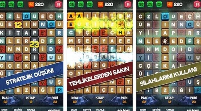 Karşınıza çıkan harfleri yatay ve dikey olarak hareket ettirip en az 4 harften oluşan kelimeler üretmeye çalıştığınız bu oyun, sözcük dağarcığınızı zenginleştirirken sizi gerçekten zorlayacak uygulamalardan biri.