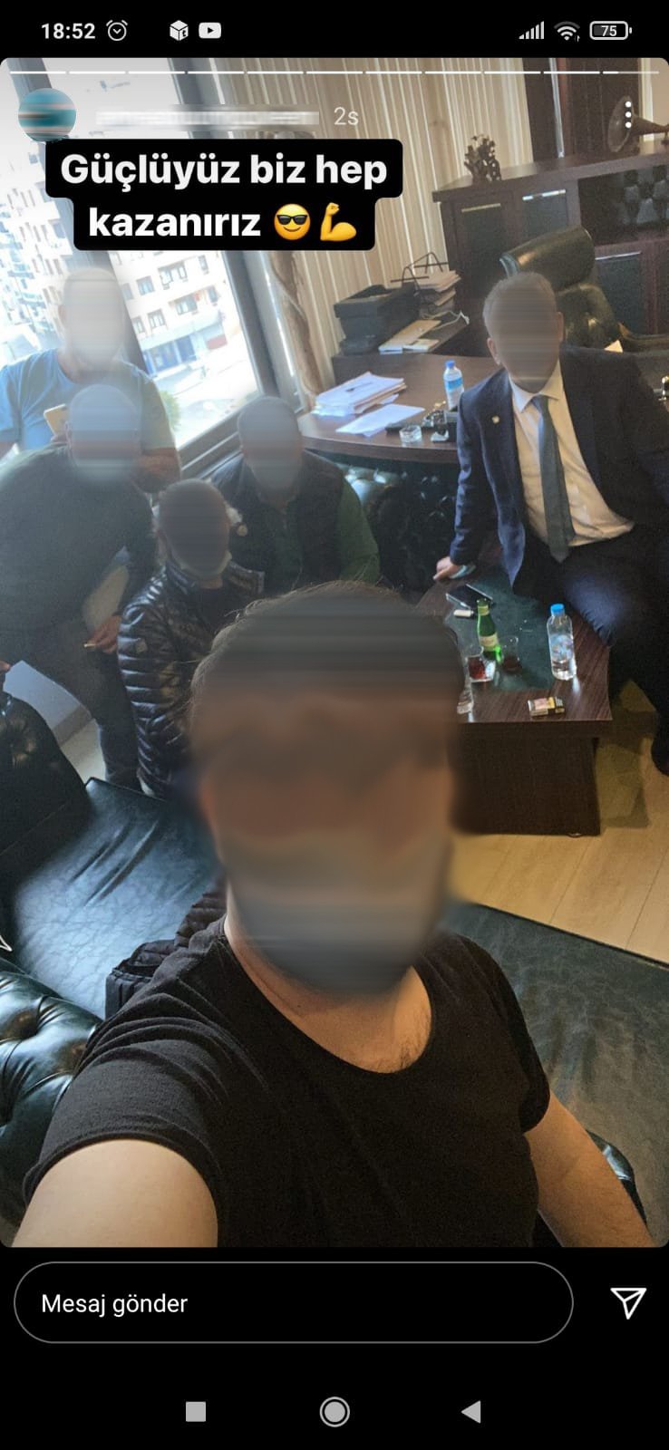 Ele geçirilen silah ve mühimmatlarla ilgili serbest kalan zanlılardan N.C’nin 5 kişiyle birlikte özel bir hastanenin yönetim kurulu başkanı E.Ş’nin makam odasında çekildiği iddia edilen fotoğrafın sosyal medyada “Güçlüyüz biz hep kazanırız” şeklinde paylaşılması da dikkat çekti.