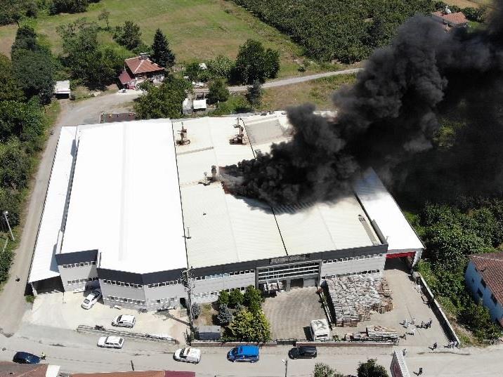 Yangın sebebi ile işçiler korku dolu anlar yaşarken, alevlerin söndürülmesi için yoğun çaba sarf ettiler. (İHA)